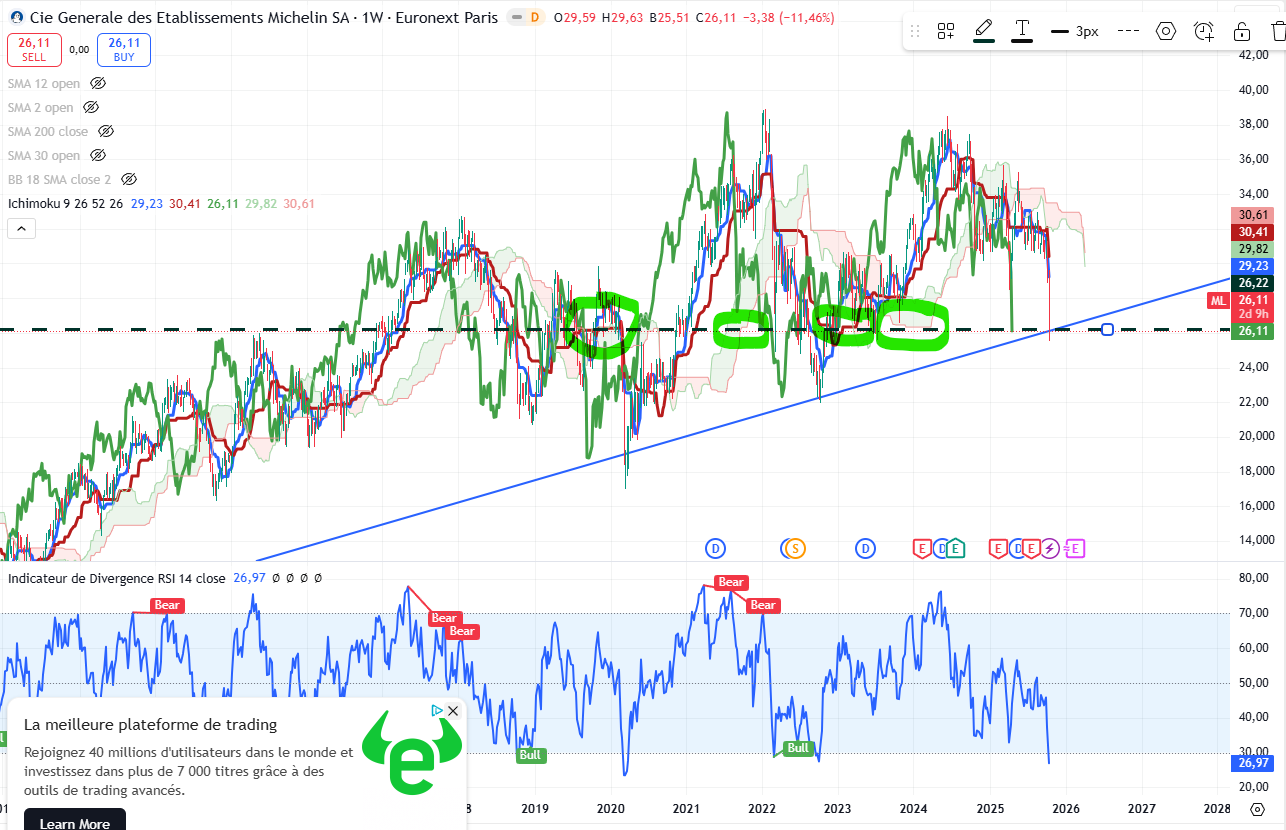 Oui renforcement de Michelin pour ma part avec une vision long terme. J’ai la même analyse que toi avec l’oblique et un retour sur les plus bas depuis 2023