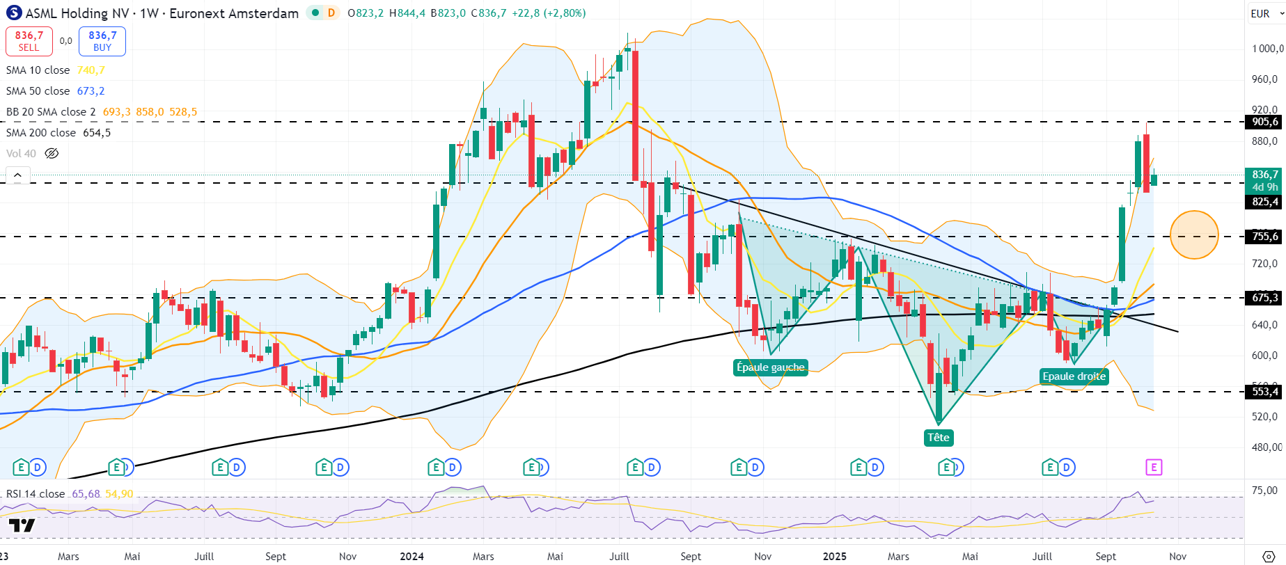 Mon analyse pour ASML, on a eu il y a quelques semaines une belle ETEI, avec un target touché la semaine dernière 890€.