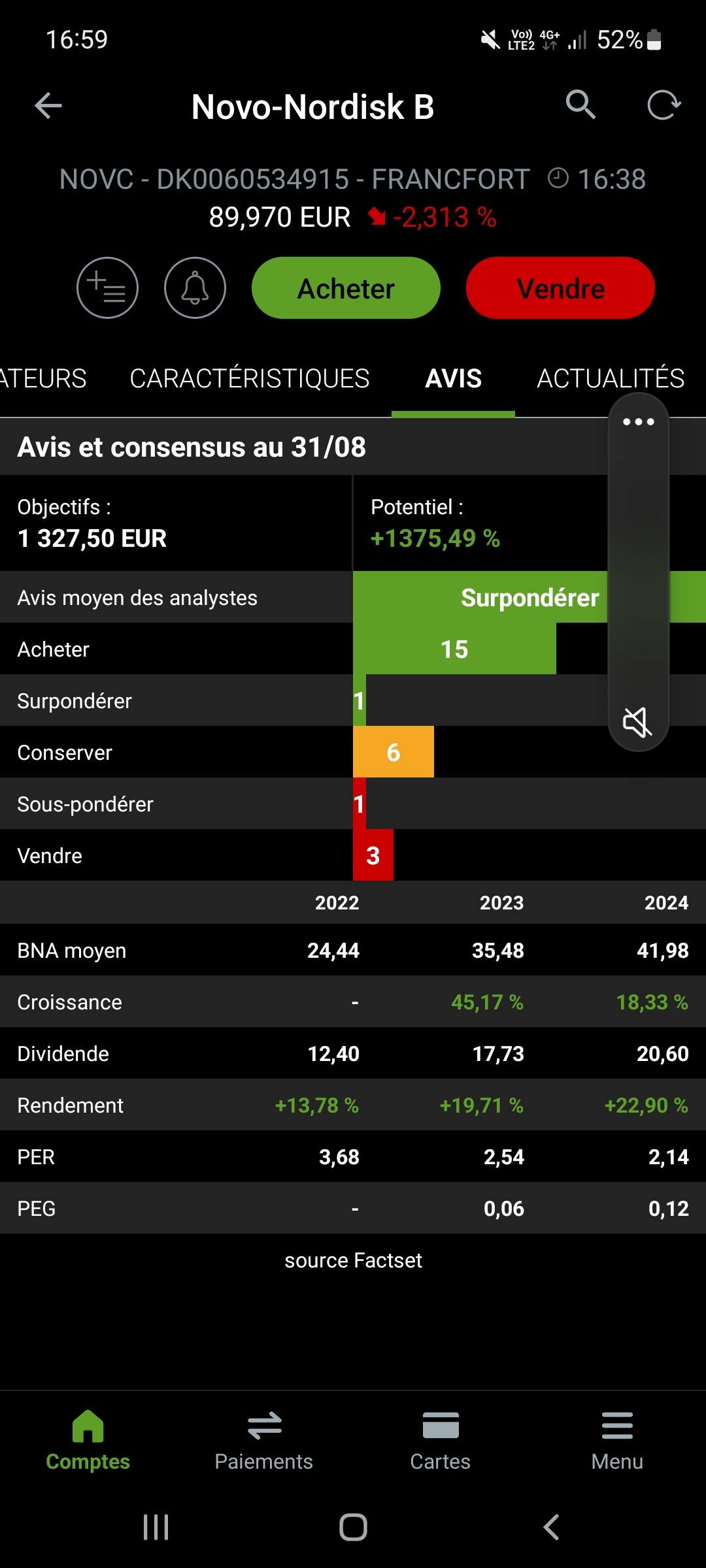 De toute manière je regarde pas trop les consensus sur Fortuneo, j’ai plus confiance en Zonebourse, ou Morningstar ![]()