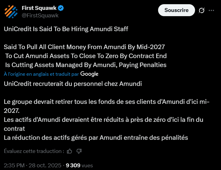 Incertitude avec Unicrédit, voila le lien sur Zone bourse https://www.zonebourse.com/actualite-bourse/amundi-collecte-nette-superieure-aux-attentes-au-t3-incertitude-sur-unicredit-ce7d5ddcdf8df124?utm_source=copy&utm_medium=social&utm_campaign=share