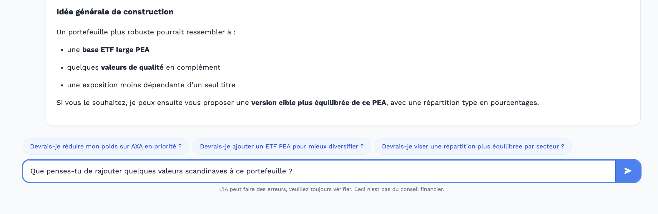 Rendez-vous dans la section « Analyse IA » de votre portefeuille ou bien encore via l’icône Robot de votre patrimoine générale pour l’analyse de plusieurs portefeuilles en même temps.