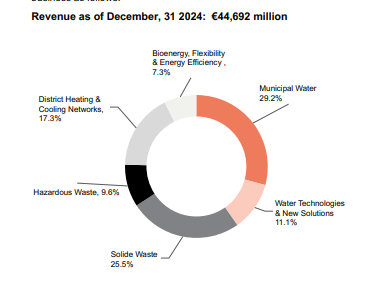 A relativiser quand-mĂȘme : Veolia a construit des centaines dâusines de dessalement Ă travers le monde et cette activitĂ© pĂšse pour moins de 10% du CA (ça correspond Ă un bout du segment rose clair)