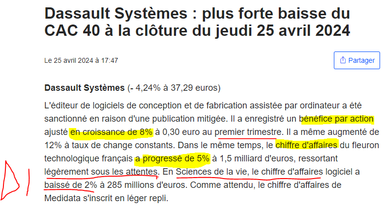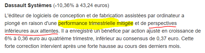Dassault System fait une chute de 25% depuis fin janvier.