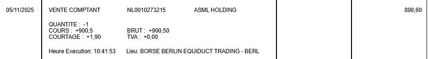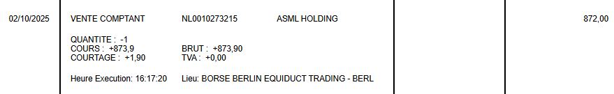 (Jâai Ă©galement fais une sortie de 3 actions car achat de 4 actions Ă 680⏠en Juillet)