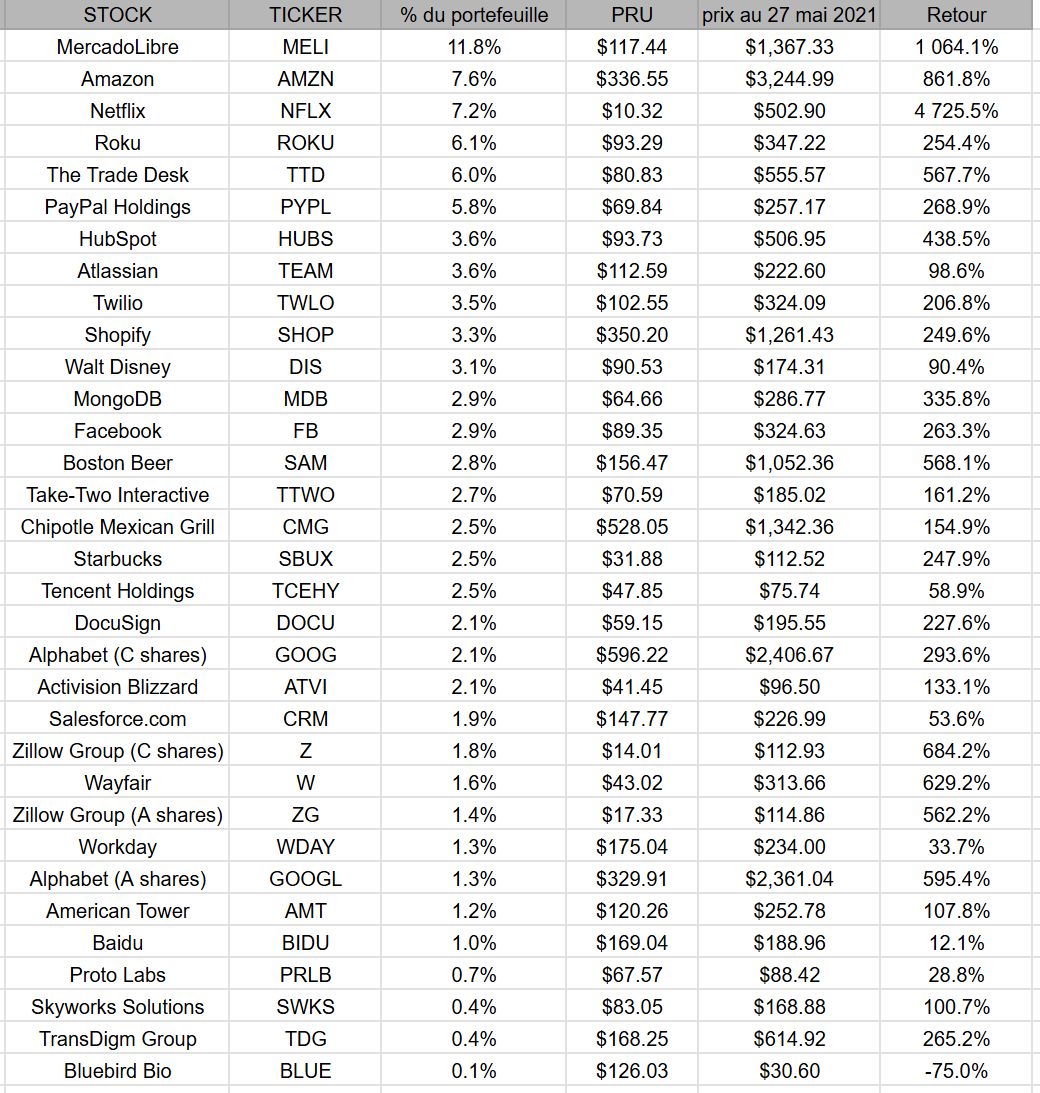 Et voici mes perf entre 2012 et 2021 (21.3% CAGR) sur mon portefeuille âhistoriqueâ