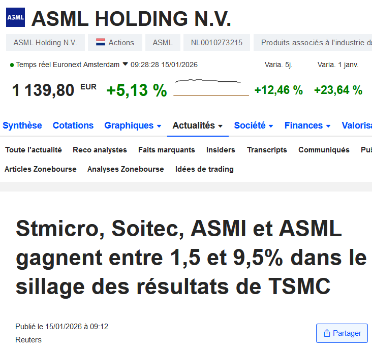 Vendre une boĂźte comme Asml, vu la qualitĂ© câest dommage, surtout pour acheter derriĂšre du Vinci ou du eiffage. Câest que mon avis. On est lĂ pour gagner de lâargent et timer le marchĂ©, sauf pour les traders pros, câest que de la perte au final. JâespĂšre ne froisser personne