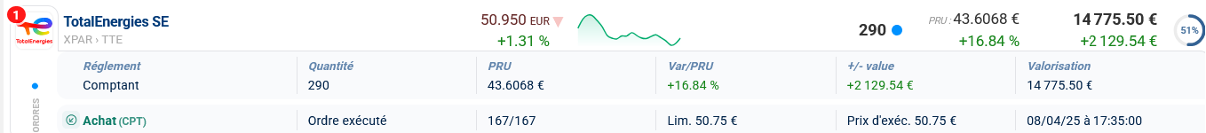 Idem , Jer57 achat de 27 actions ce matin donc je passe de 569 à 596 , merci
