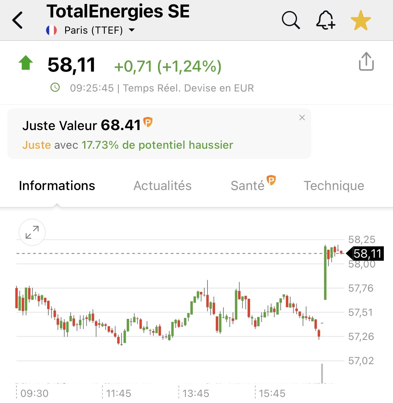 +10 total ce matin a lâouverture mon ordre a 57.10 est pas passĂ© hier je lâai mis a 58 ce matin pas grave