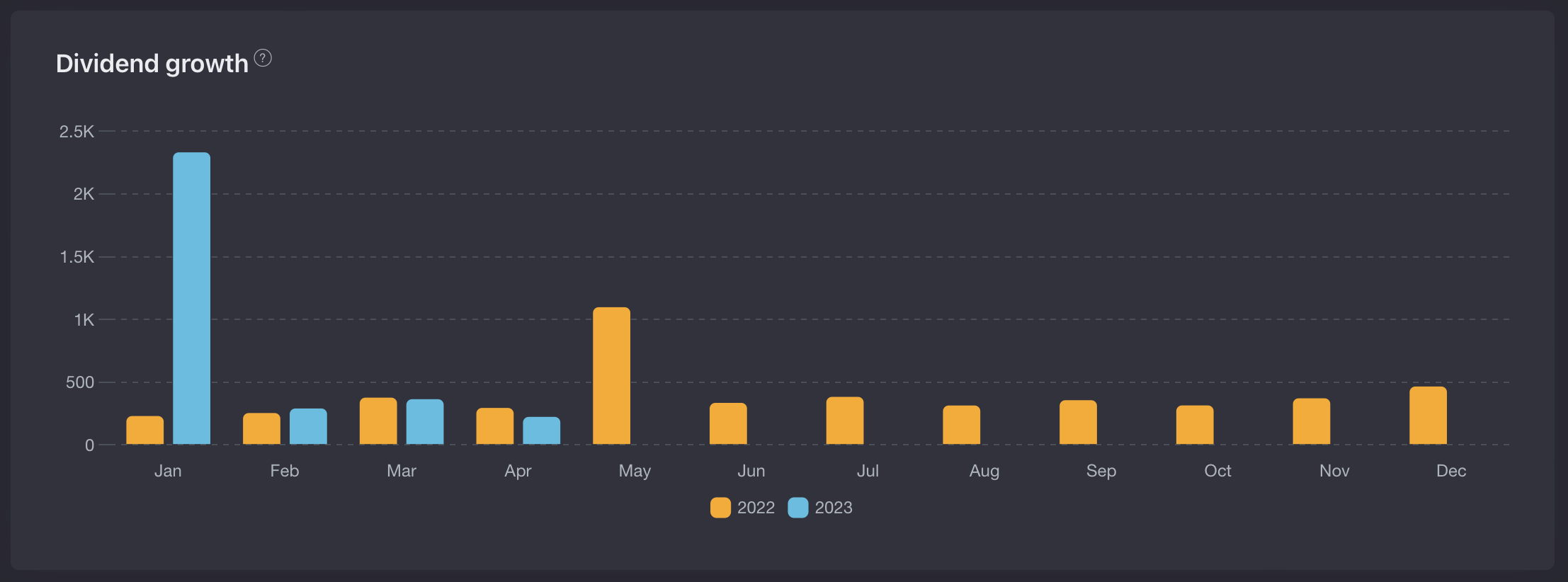 4 - Le graph de comparaison annuel des Dividendes est top (simple et efficace)