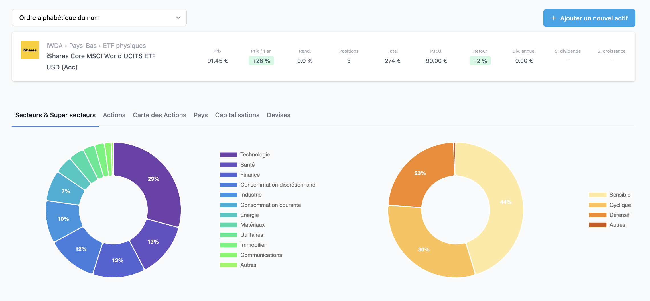 J’ai pris la décision de faire un développement pour que les ETFs synthétiques soit comptés dans la diversification sectorielle et géographique en se basant sur l’indice qui est tracké. Même si cela est fait de manière synthéthique.