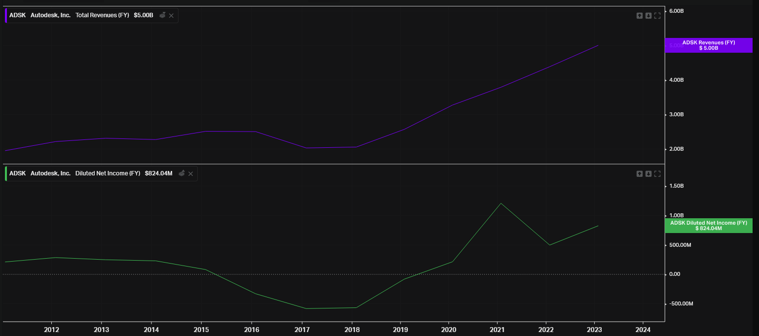 Autodesk est intéressante mais honnêtement le trou dans la caisse de 2016 à 2019 me fait un peu peur, il s’était passé quoi, une grosse réorga ?