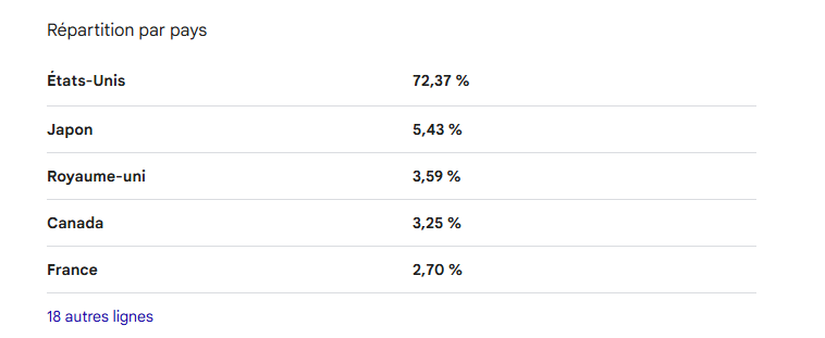 Contrairement à un ETF S&P (ou pire NASDAQ) où c’est du full US garanti. Et la perf vient avec le risque, puisque le S&P surperforme le World