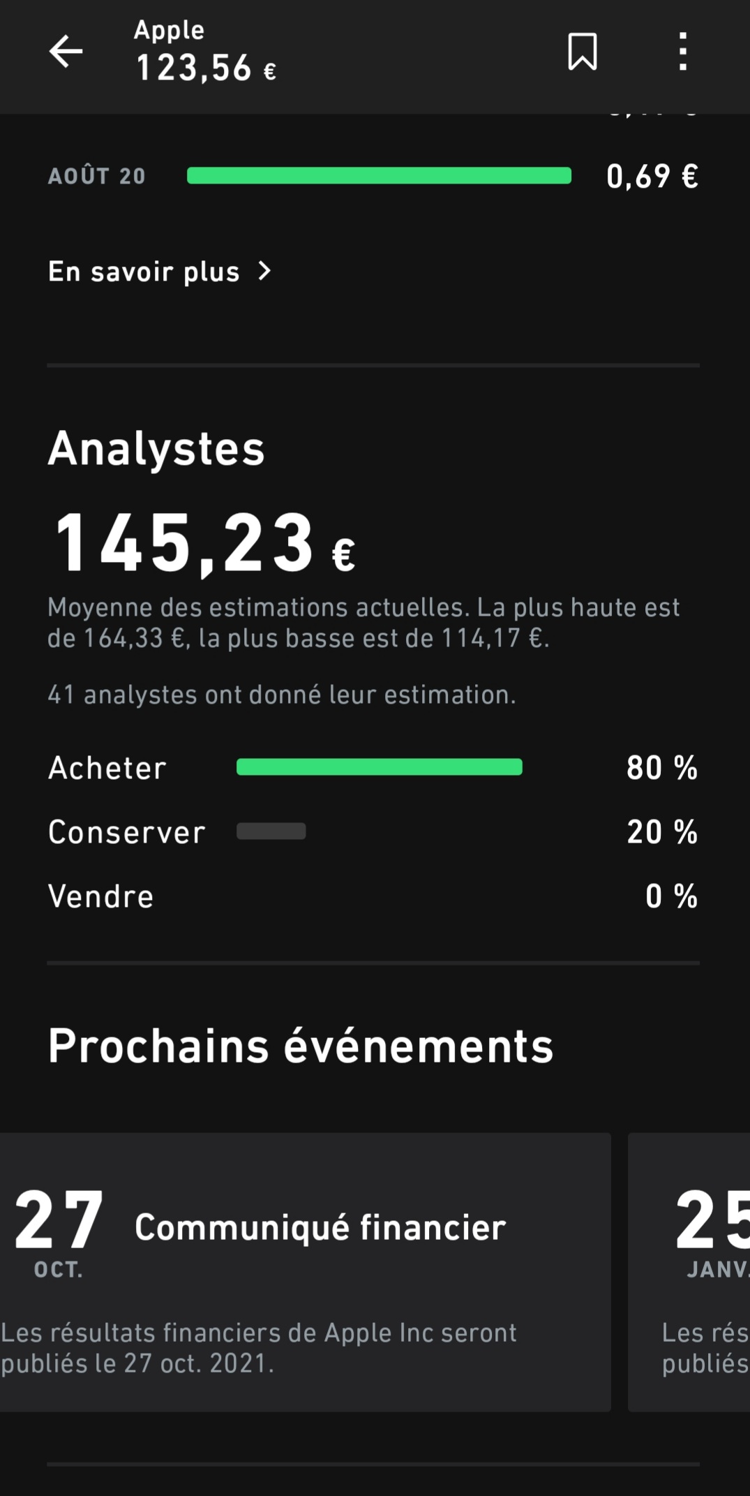 Quelques screenshots sur lâaction Apple :