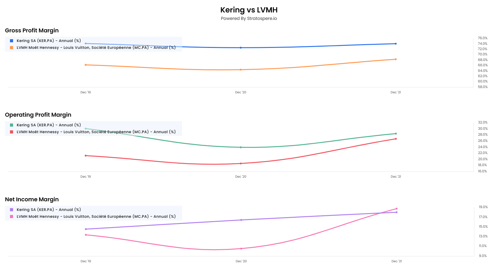 Plus sĂ©rieusement, je regarde rapidement Kering, câest peut-ĂȘtre moins sexy que LVMH avec les marques ou en terme de nom, mais leurs rĂ©sultats ne semble pas nul non plus, surtout avec une certaine Ă©fficacitĂ©: