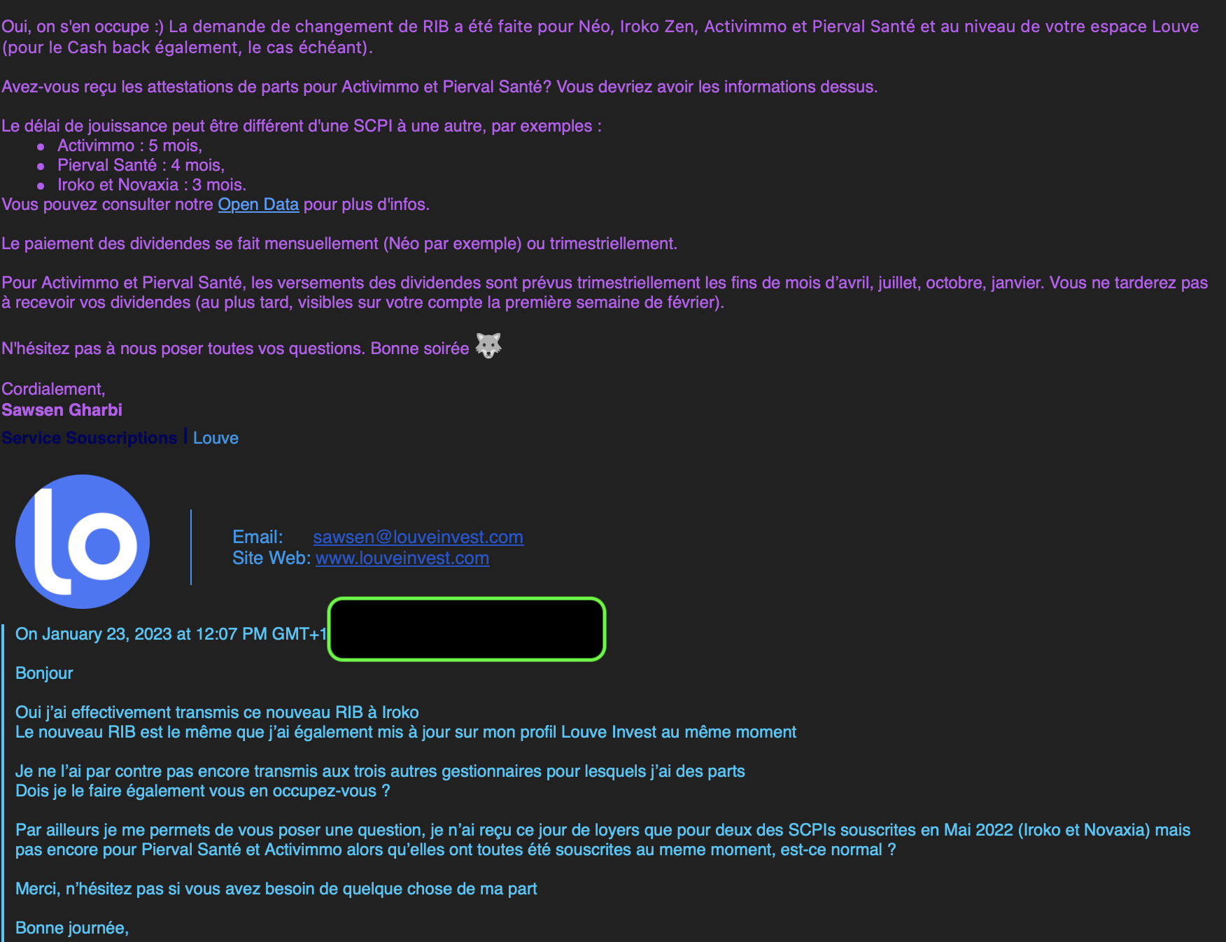 Pour la fiscalité, c’est transmis aux autorités fiscales directement a priori car ils te demandent ton numero fiscal à l’inscription, mais je pense que ce n’est pas Louve qui le fait mais les gestionnaires des SCPIs directement - je peux me renseigner et te confirmer si tu veux