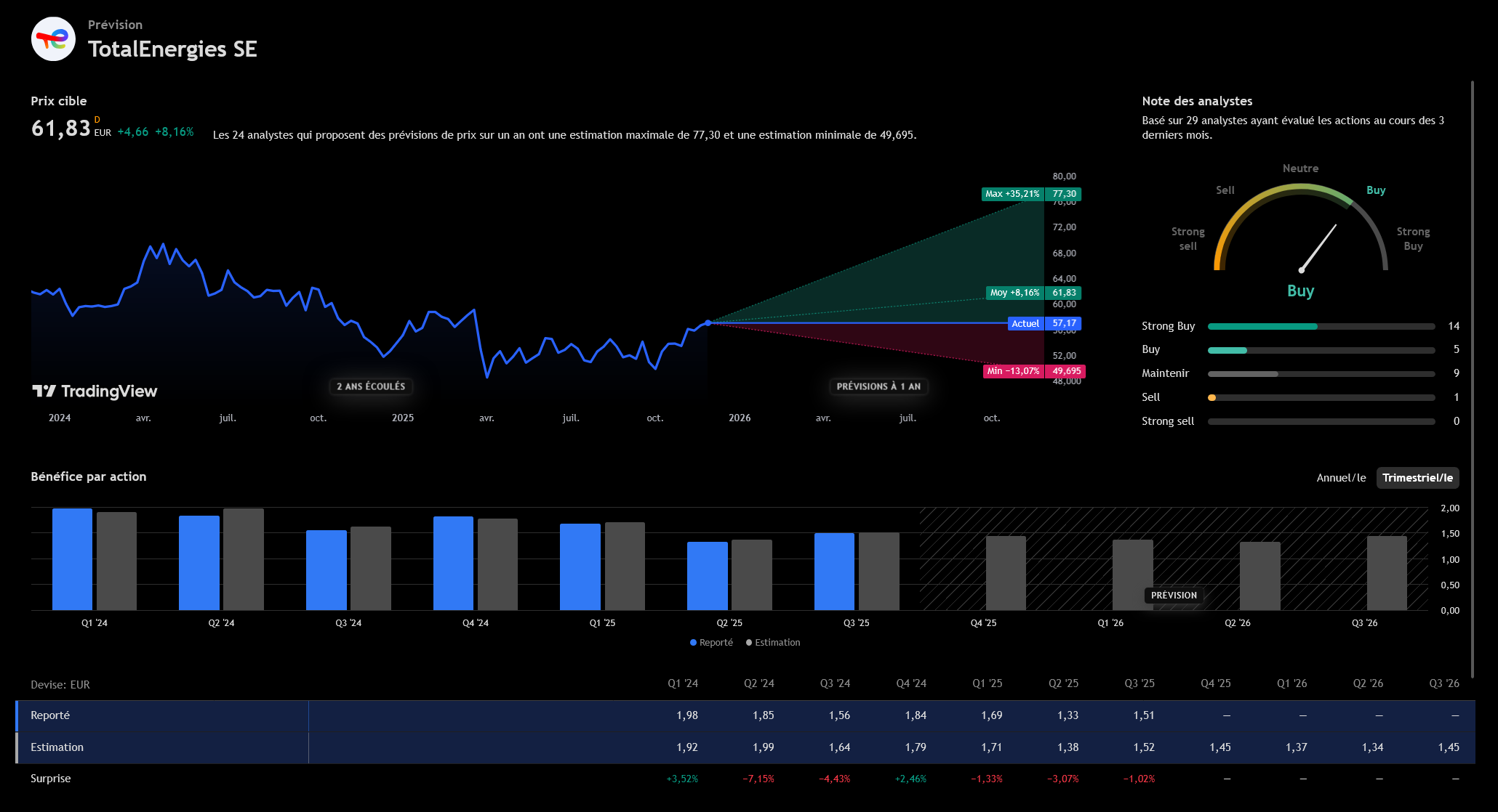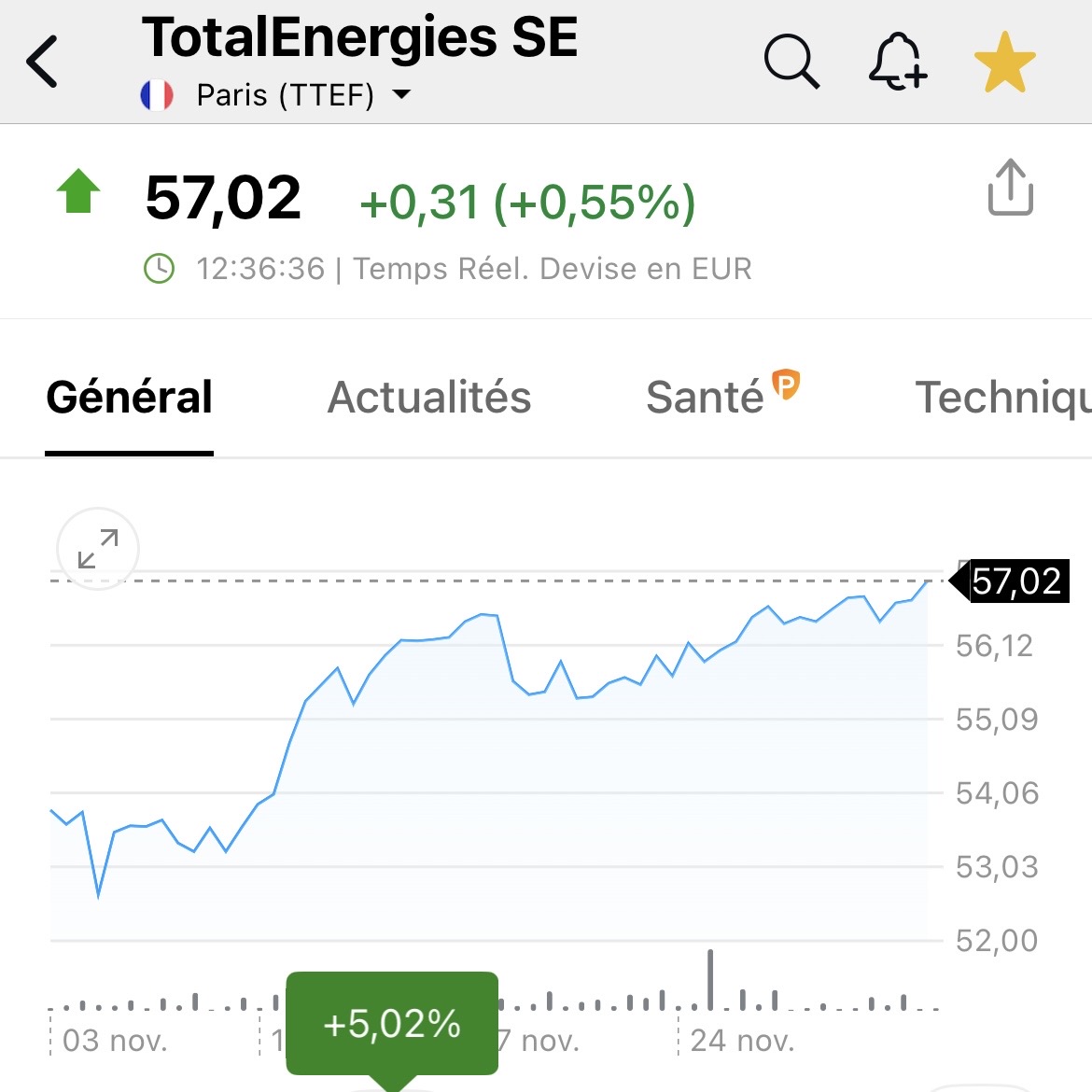 Et voilà … Total qui décolle tranquillement … on se revois au 61€ les copains lol .