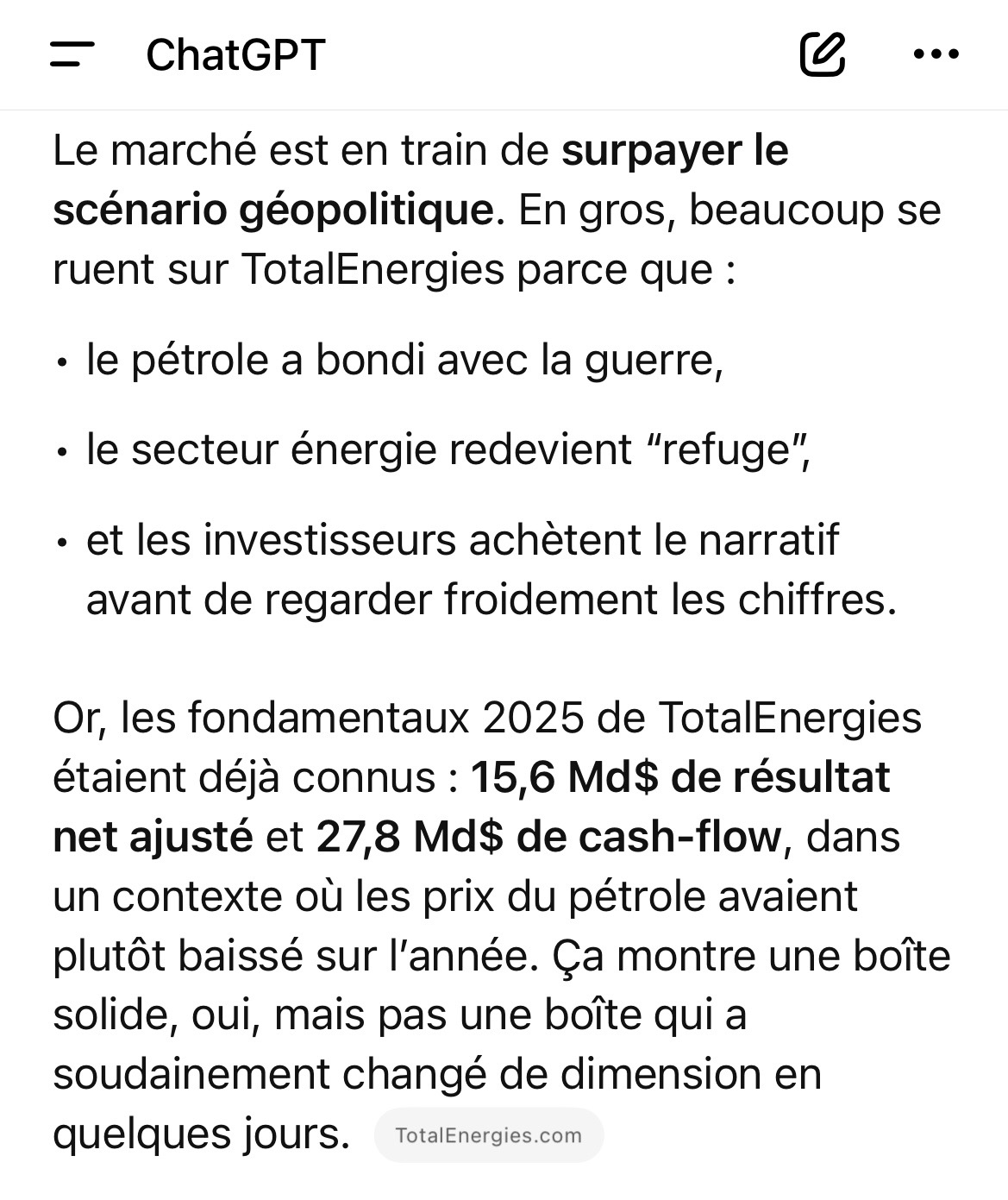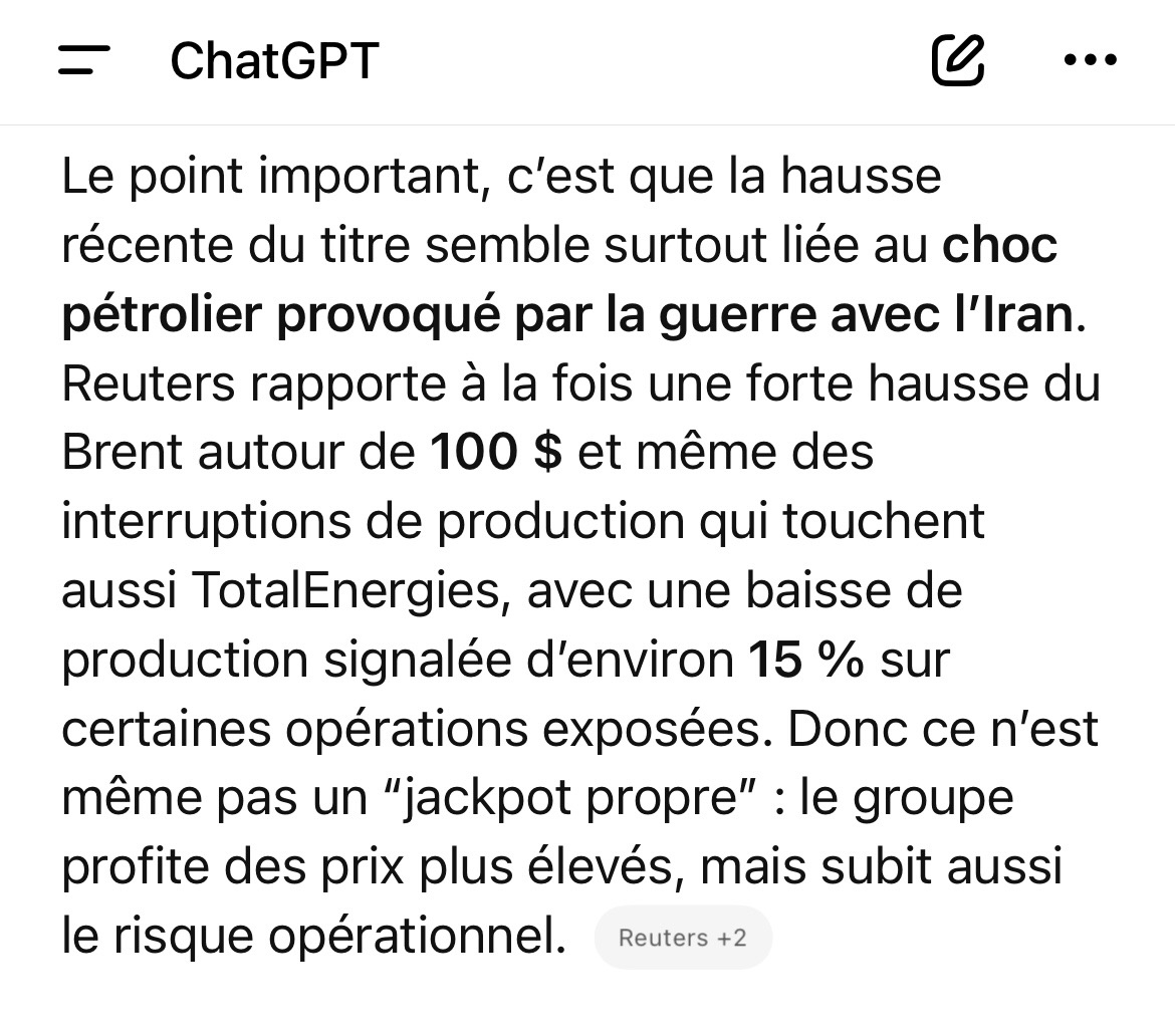 Tant qu’il est au delà de 90$ en même temps TotalEnergies feras de super résultats, d’autant que l’année précédente est facile à battre ![]()