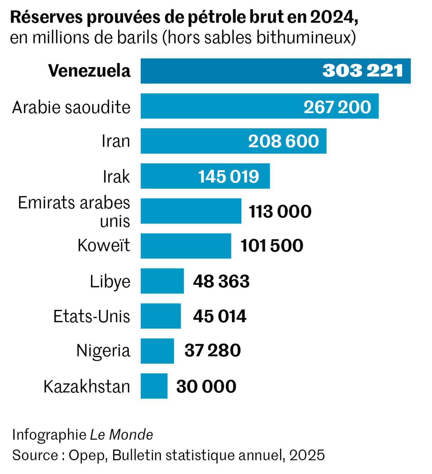 2. Le pĂ©trole. Le VĂ©nĂ©zuela, câest 300 milliards de barils en rĂ©serve, soit prĂšs de 20 % des ressources mondiales. Depuis quâH. ChĂĄvez, prĂ©cĂ©dent prĂ©sident, a nationalisĂ© les actifs Ă©trangers, les majors occidentales rĂ©clament 60 milliards en compensation. D. Trump a donc annoncĂ© lâimplantation de pĂ©troliĂšres amĂ©ricaines au VĂ©nĂ©zuela et des milliards de dollars dâinvestissements.