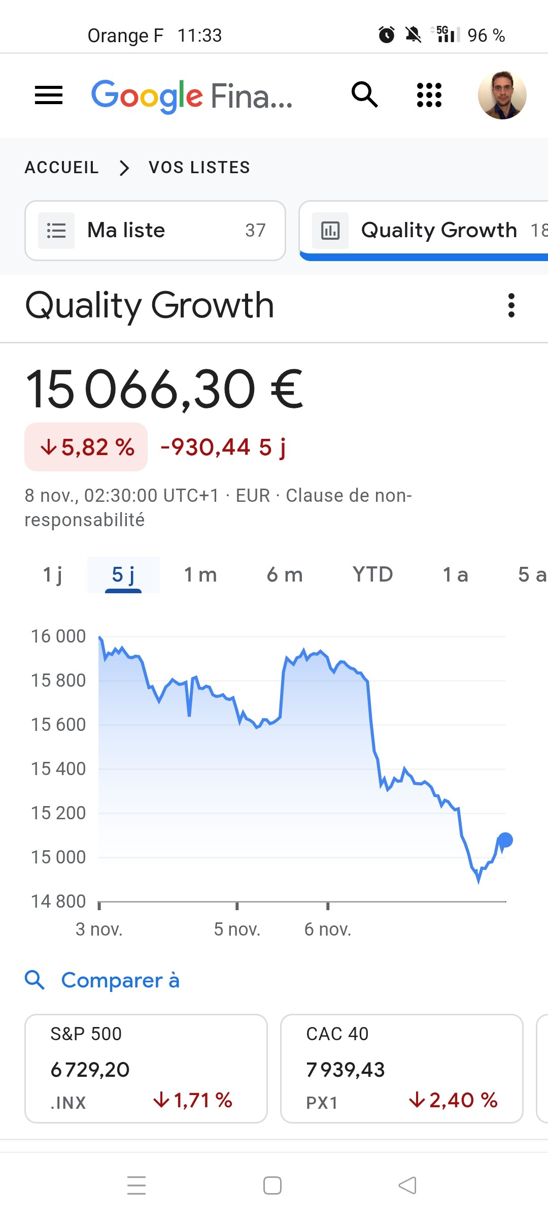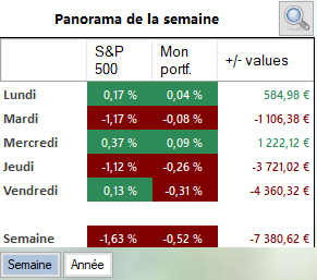 Je suis Ă moins 1,55% environ soit moins 1200âŹ.. mais bon attendons de voir la semaine prochaine.