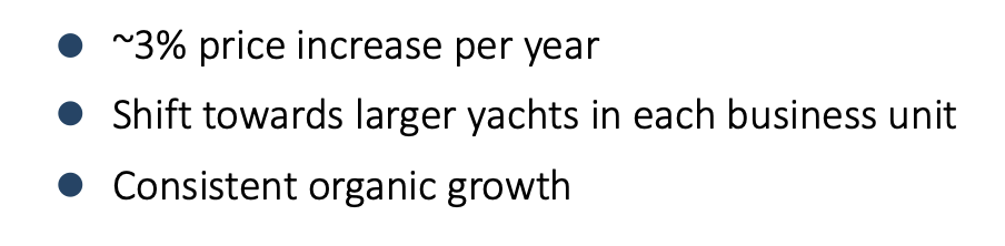 La sociĂ©tĂ© explique que ses marges qui augmentent sont dues Ă un peu tous les facteurs possibles : economies dâĂ©chelle, rationalisation et optimisation des couts, internalisation des certains processus (acquisition dâune menuiserie haut de gamme) et⊠Augmentation des prix grace Ă la reconnaissance de plus en plus accrue de la qualitĂ© des bateaux de TISG (pricing power).