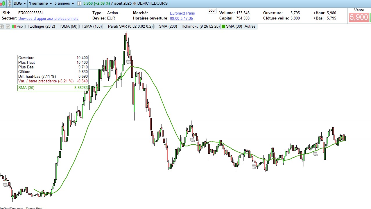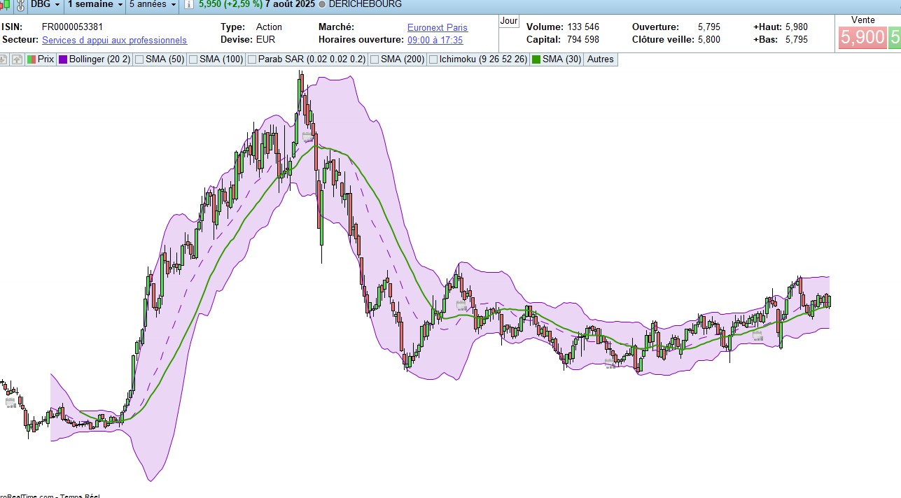 Je viens de regarder un peu pour essayer de comprendre. Je suis tombĂ© sur Derichebourg qui a lâair dans une phase 1⊠mais comme je maĂźtrise pas trop les graph quelquâun pourrait me confirmer ou jâai vraiment rien compris ![]()