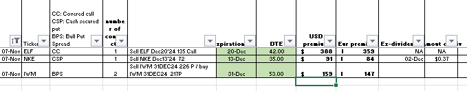 Pour ma part, jâai rachetĂ© mon call couvert WBD de dĂ©cembre, puis revendu 500 actions avec un PRU Ă 8,30 $ pour une vente Ă 9,30 $. Jâai aussi roulĂ© ma position ENPH Ă 71 $ pour fin novembre, on verra comment ça va Ă©voluer. Hier soir, jâai vendu deux calls couverts Ă 65 $ sur CVS. Jâai lâimpression que le marchĂ© devient trop greedy avec lâeffet Trump, donc je commence Ă accumuler un peu plus de cash et ralentis lĂ©gĂšrement la cadence.