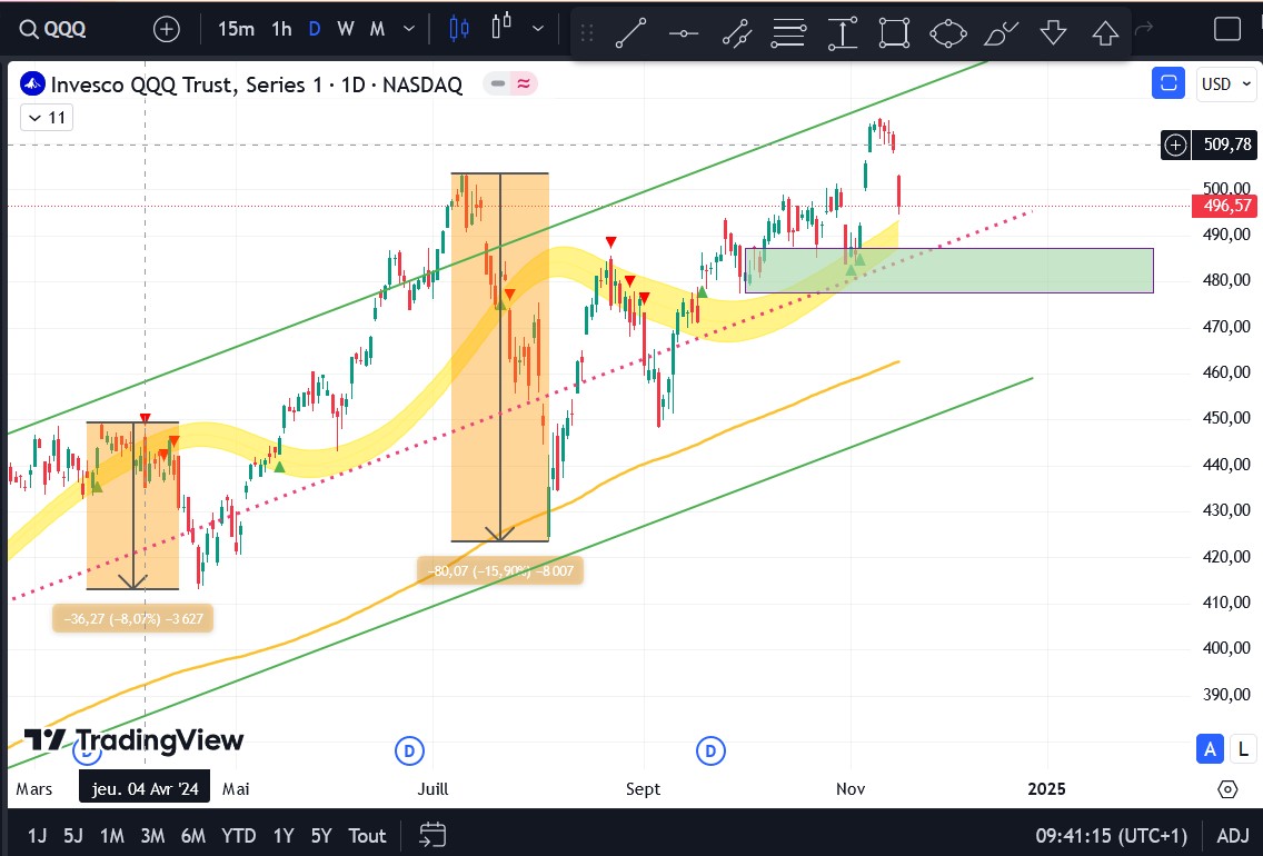 ça risque d’encore un peu baisser la semaine prochaine à cause de Powel qui a dit que les taux ne baisseraient peut-être pas mais cela devrait repartir sur les 480 (il veut surement emmerder Trump qui aimerait qu’il démissionne !!)