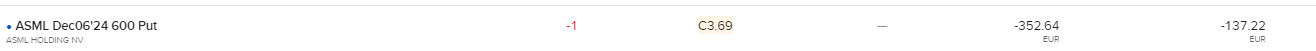 SOLD 1 ASML Dec20’24 600 PUT @ 3.3