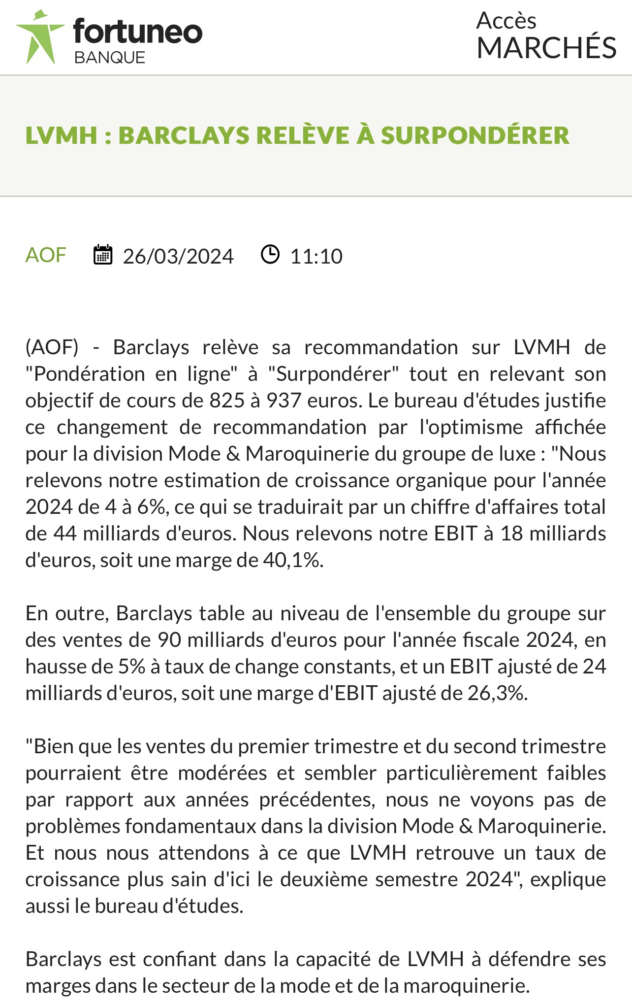 pour les resultats 2023, Arnault annoncé les 9% annualisés mini