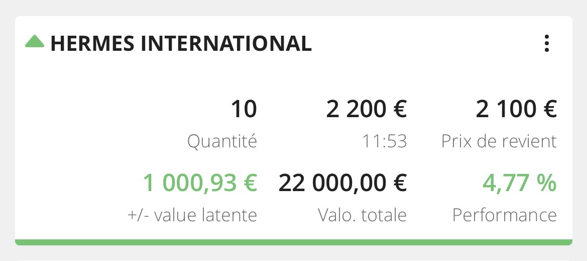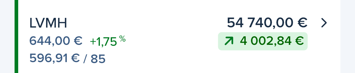 Content d’avoir acheté 4 lvmh dans pea a 452 euros l’action 40% de plus value + dividendes a venir