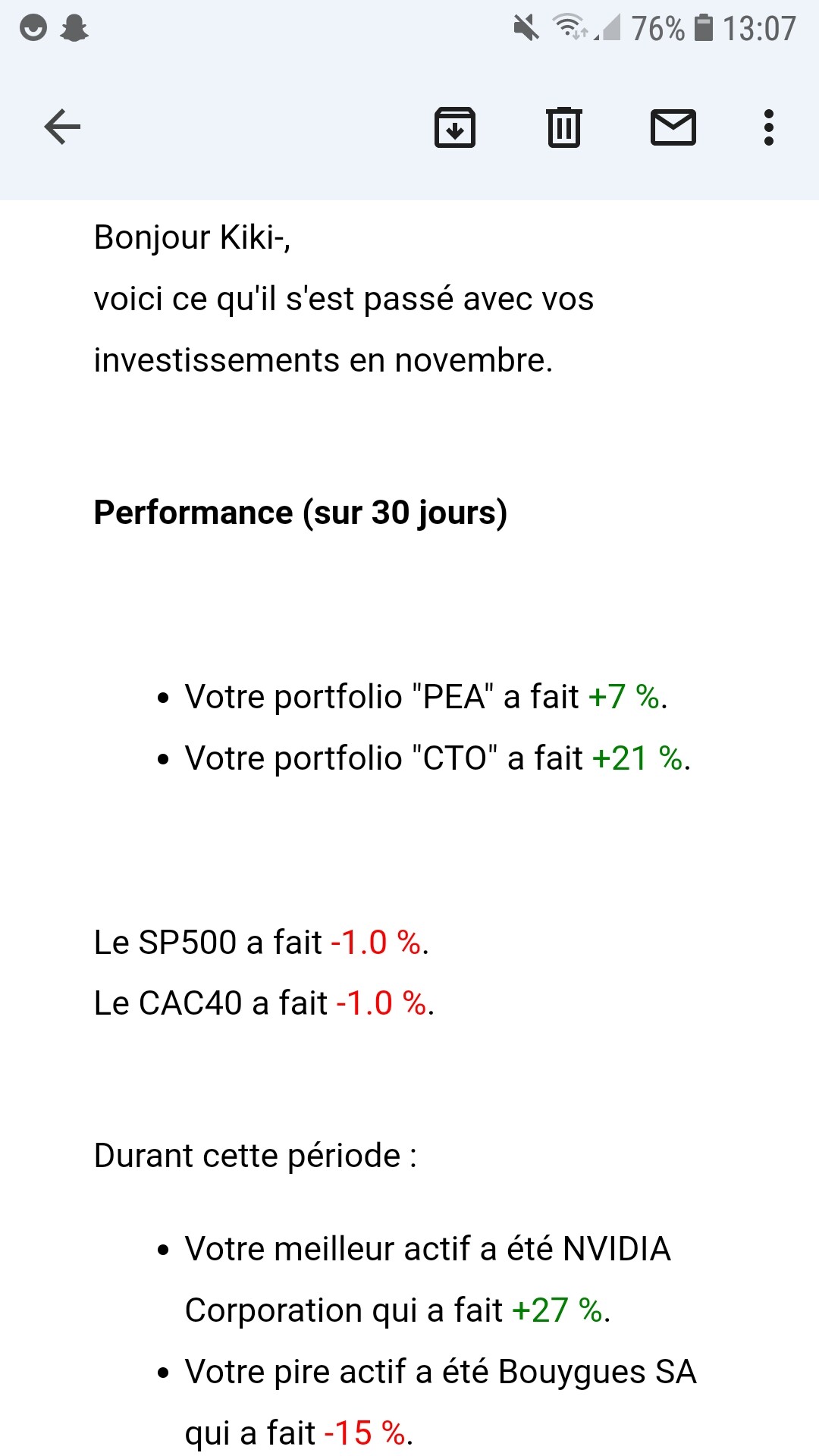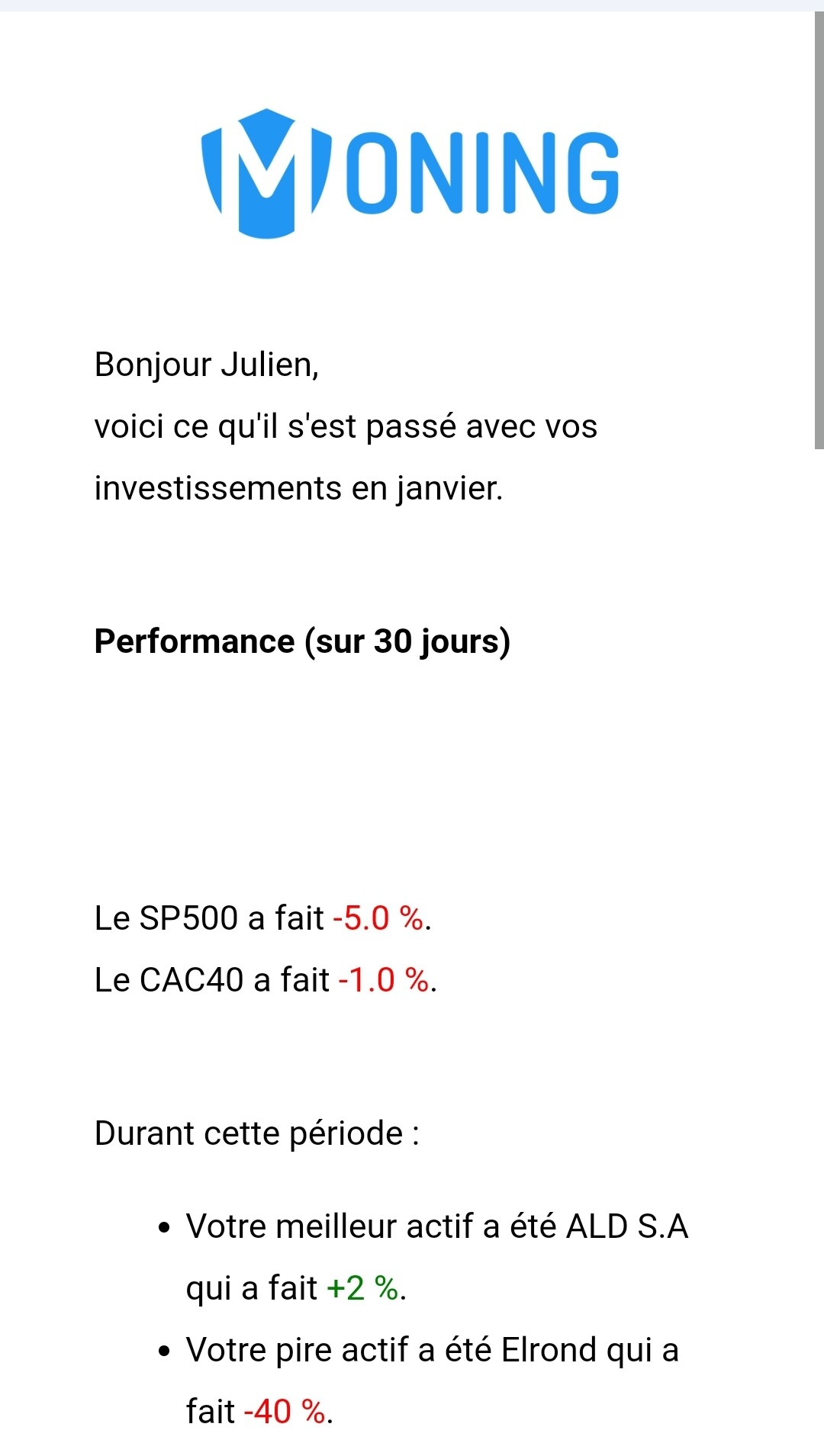 Jâai les chiffres ! mais le message dit que jâai battu le marchĂ© alors que jâai -4 %