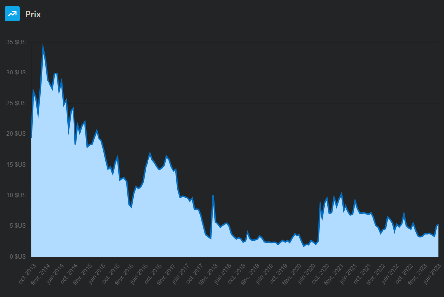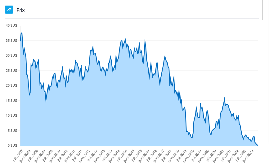 Coupure du dividende depuis 2019. Action à $0.06