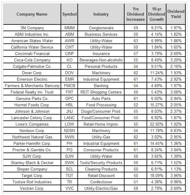 Sur un autre article, qui donne la list des Dividend Kings en 2018 soit il y a 5 ans.