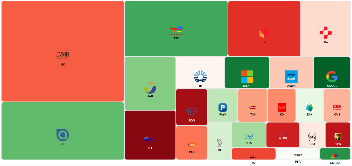 MAIS⊠ben vi je suis un chiant, non pas avec un code couleur qui correspondent a nos achats et donc variation de portefeuille, MAIS en fonction de ce quâon fait nos secteurs en bourse, si les reitâs baisse, le carrĂ© = la proportion, mais la couleur Rouge car sur un mois ça a baisser !
