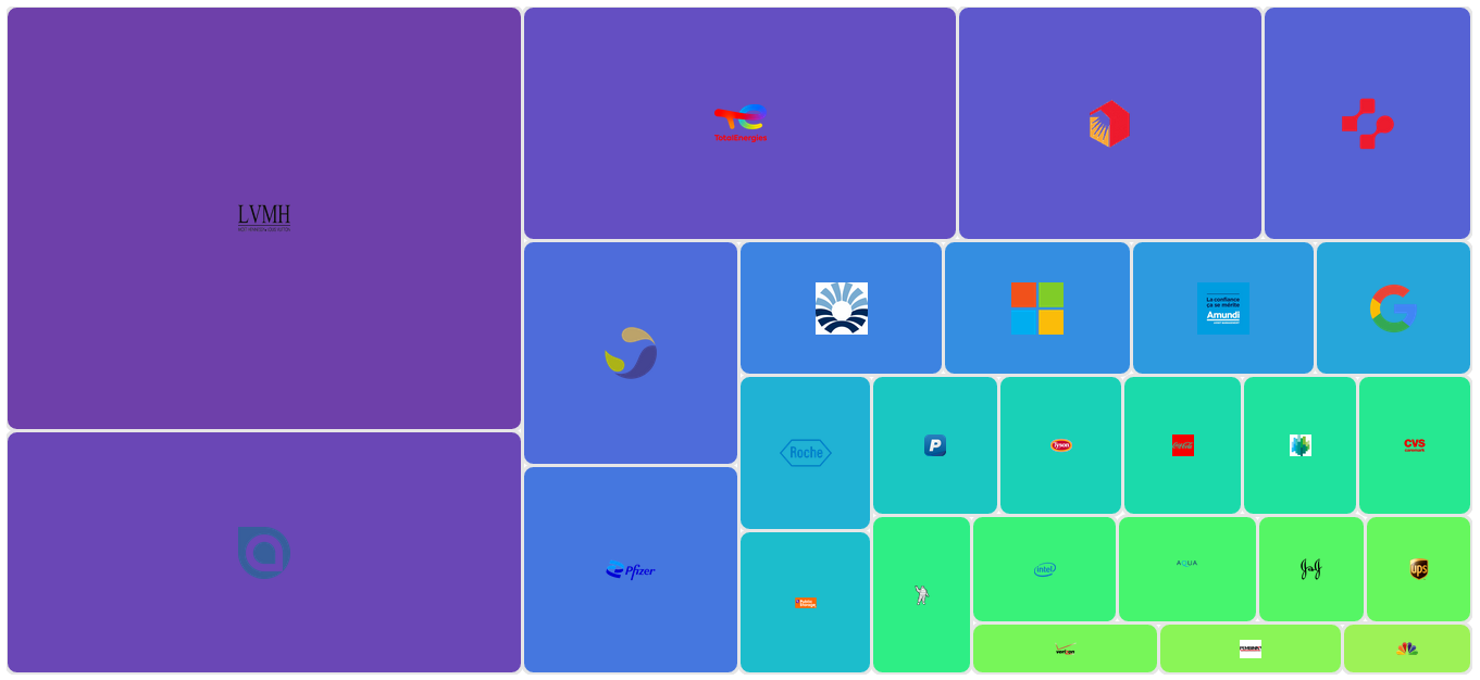 De mon cÎté, une visualisation à deux axes : le poids et la valorisation (au hasard ⊠quoique ;)), est ce qui me serait le plus utile, le plus pratique à lire et avec le plus de valeur ajoutée.