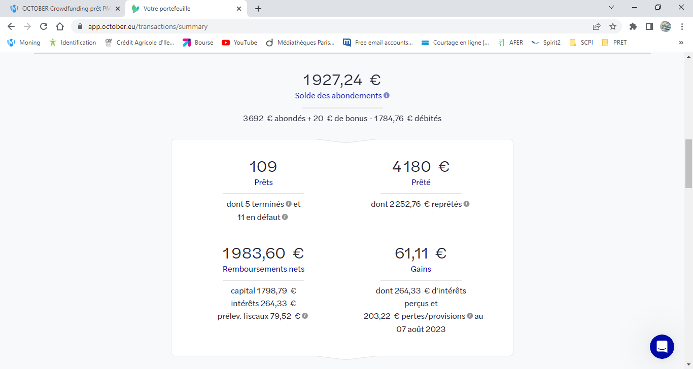 Aussi sur october⊠pour lâinstant un seul prĂȘt en retard⊠mais je compte arrĂȘter cet investissement