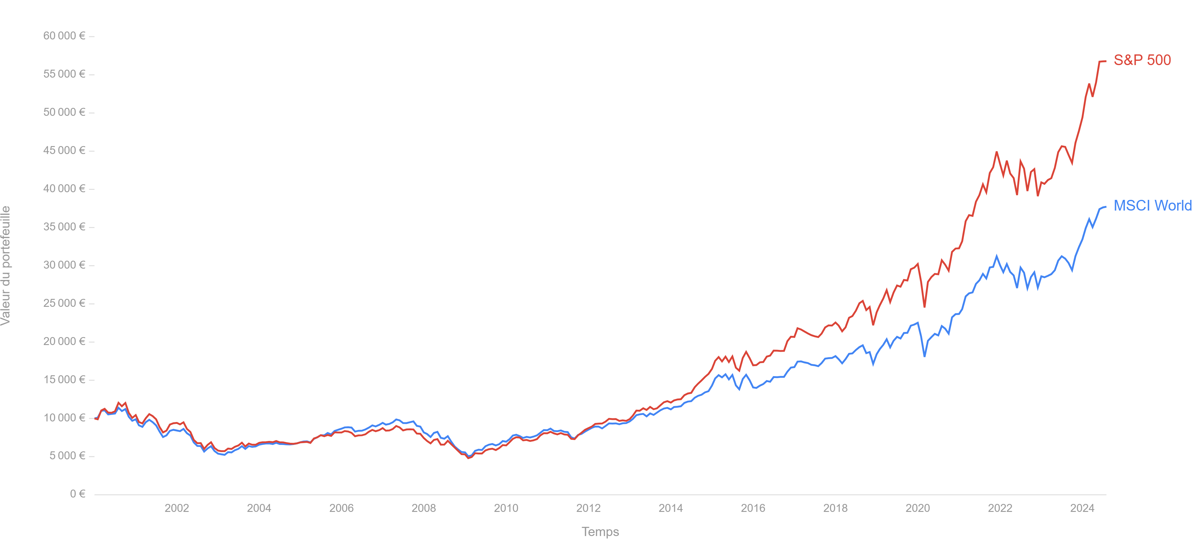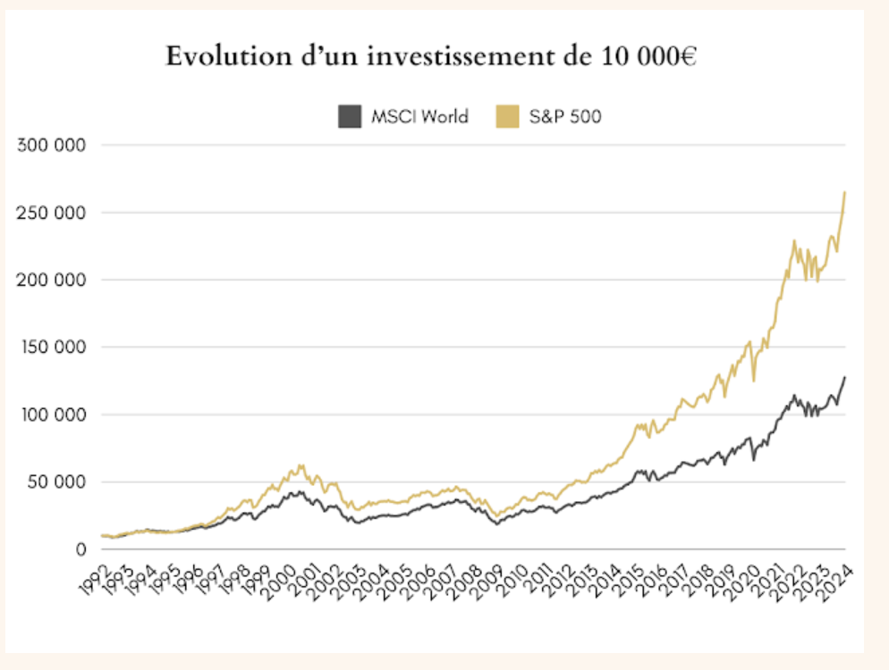Jâavais cru comprendre que le SP 500 de toute façon surperformait le MSCI World. En tous cas jâai prĂ©fĂ©rĂ© investir sur le SP500 au lieu du MSCI World en tenant compte du dynamisme du marchĂ© US.