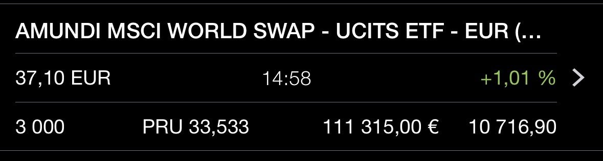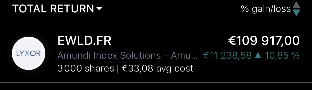 ATH de mon ETF World, soit une jolie pv de +10800⏠sur ma ligne de 3000 EWLD