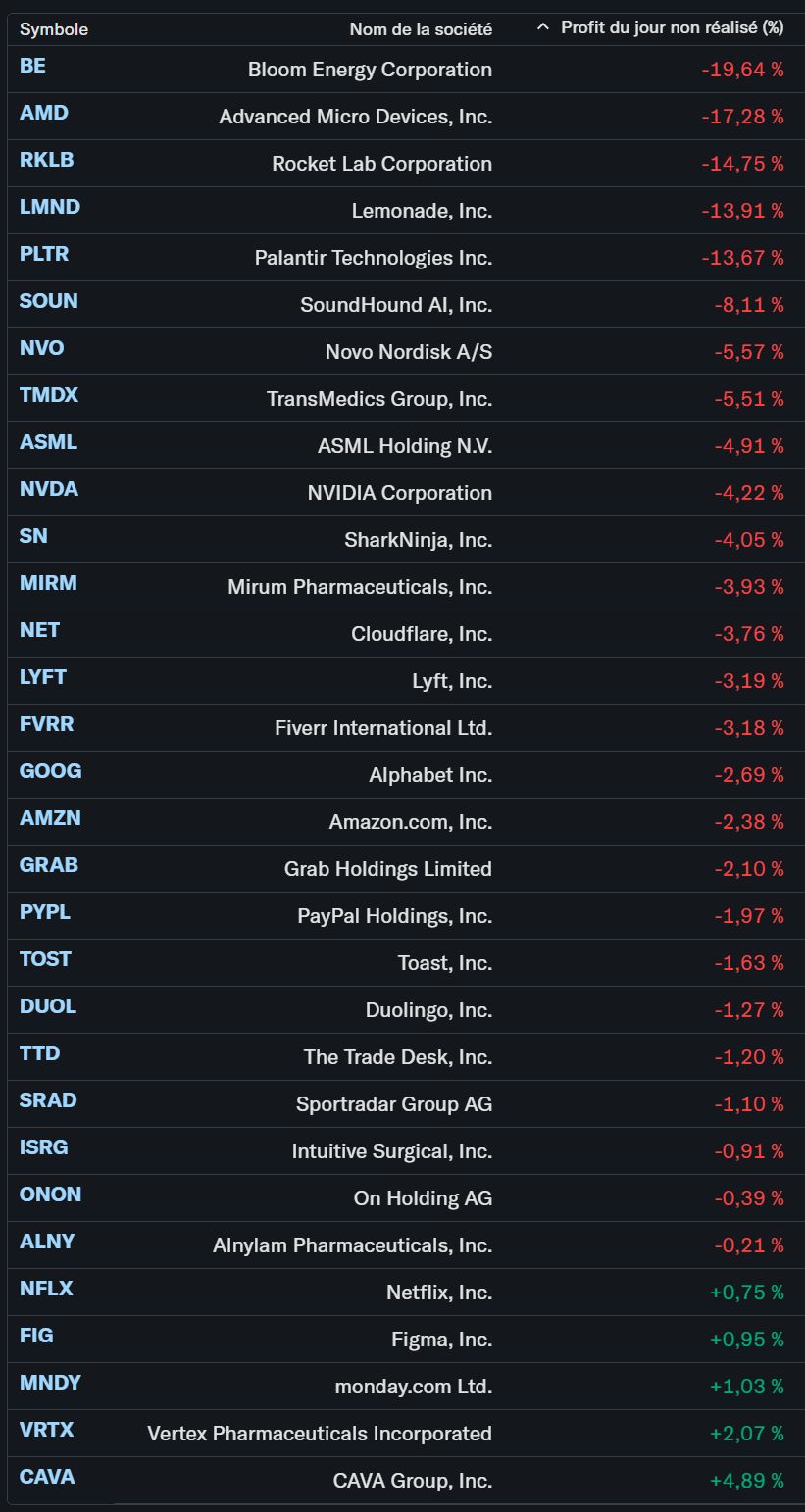Aussi, mon portefeuille câest juste 37% de valeur techno et si on se contente de catĂ©goriser les SAAS qui subissennt le narratif de plein fouet câest bien moins que ça. Je me considĂšre bien couvert.