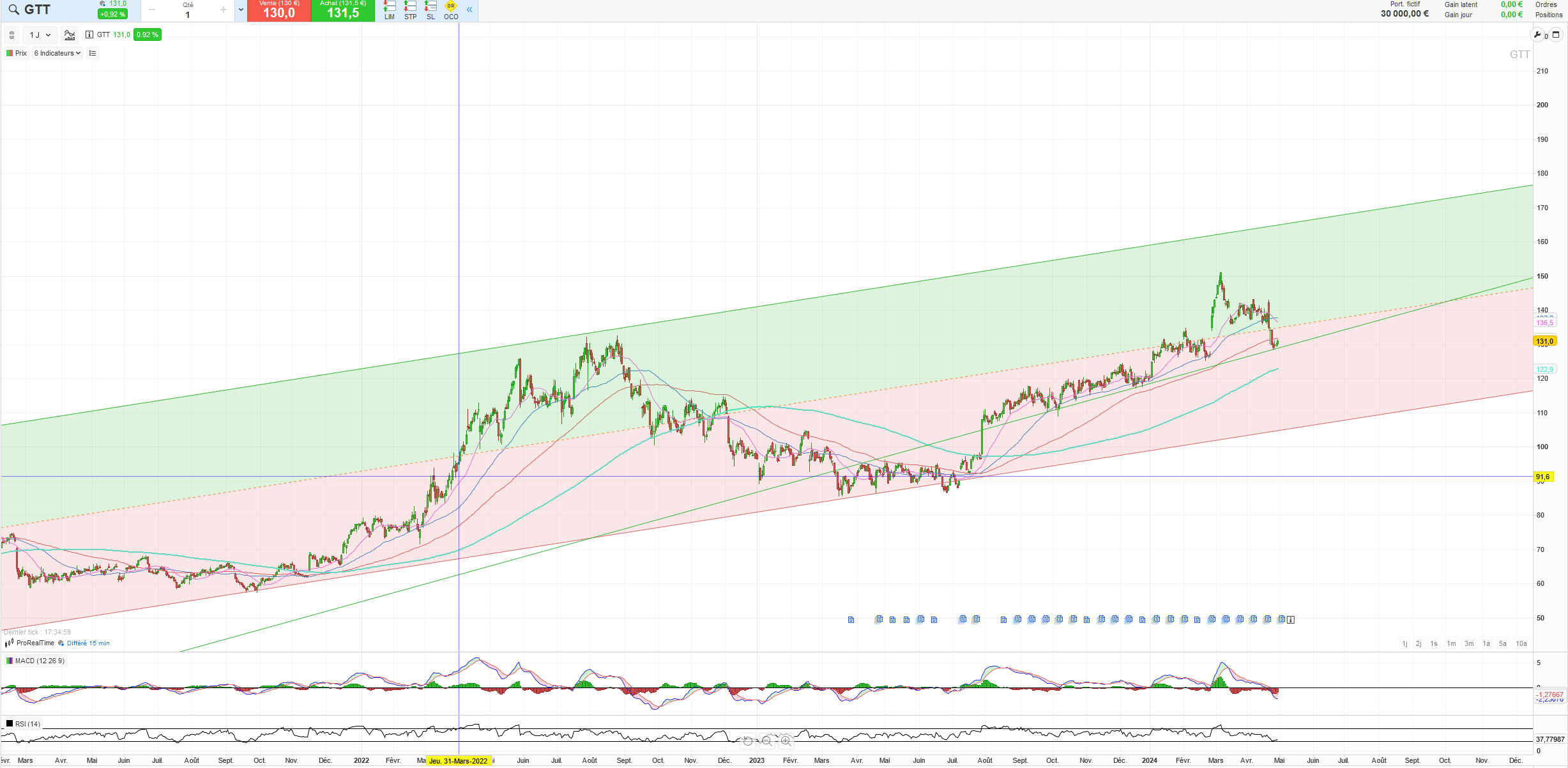 Sur GTT, il y a cette oblique que je suis depuis plusieurs mois et qui fonctionne, depuis que ça a break aprÚs résultats: