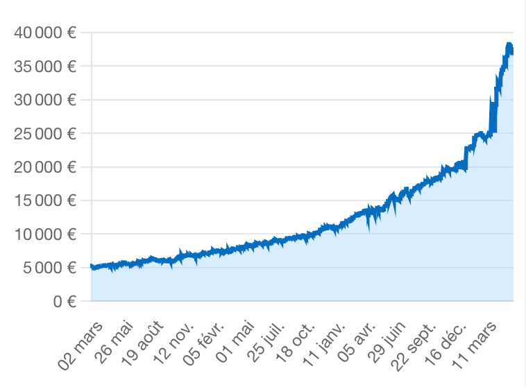 Aujourd’hui je me dis que c’est bien oui et comme beaucoup je me dis, « tu aurais du mettre les 8000€ de cash de suite ! » ![]()