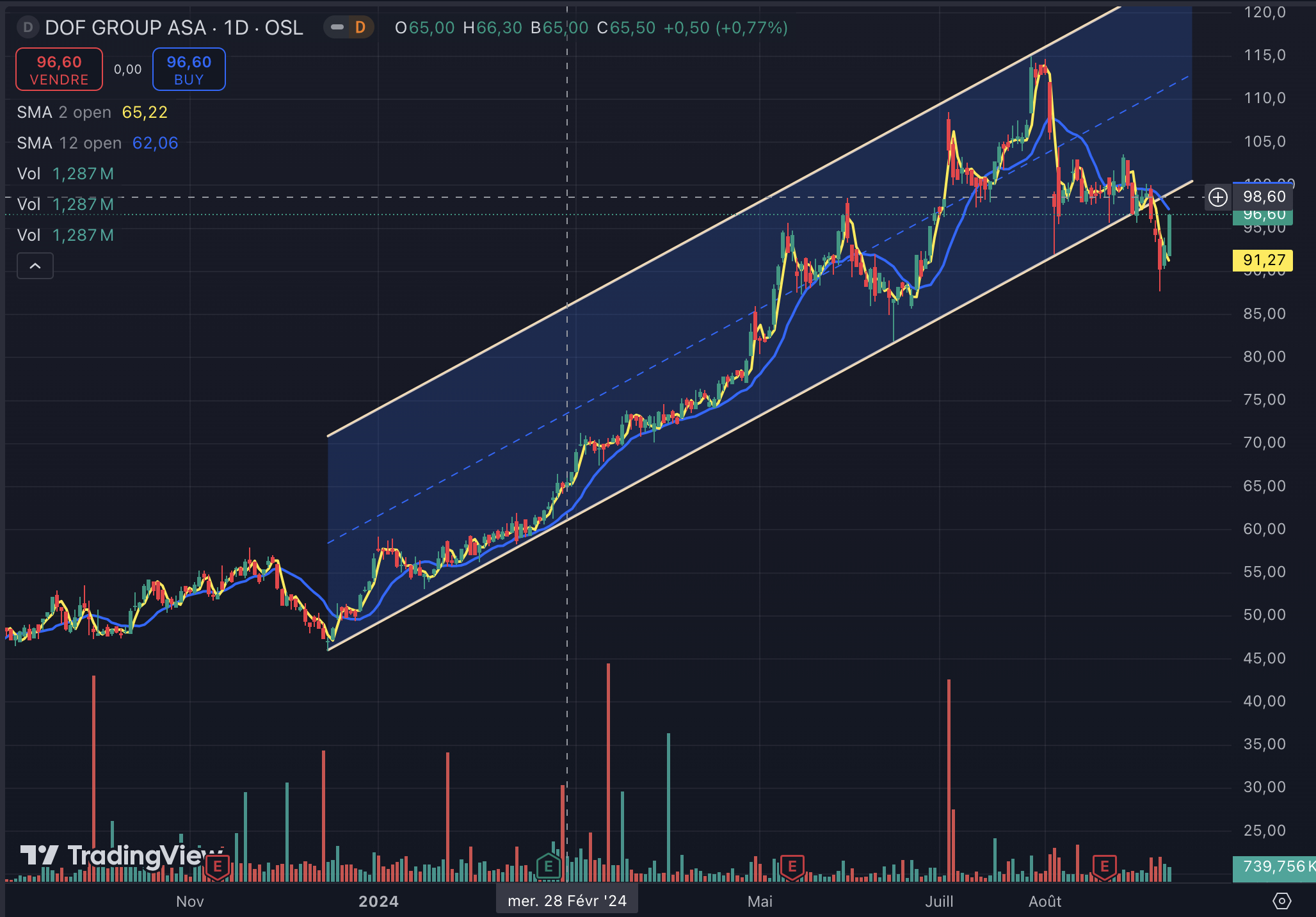 En valeur NorvĂ©gienne jâavais regardĂ© DOF Group, qui avait un magnifique canal haussier. Valeur rĂ©cente Ă surveiller.