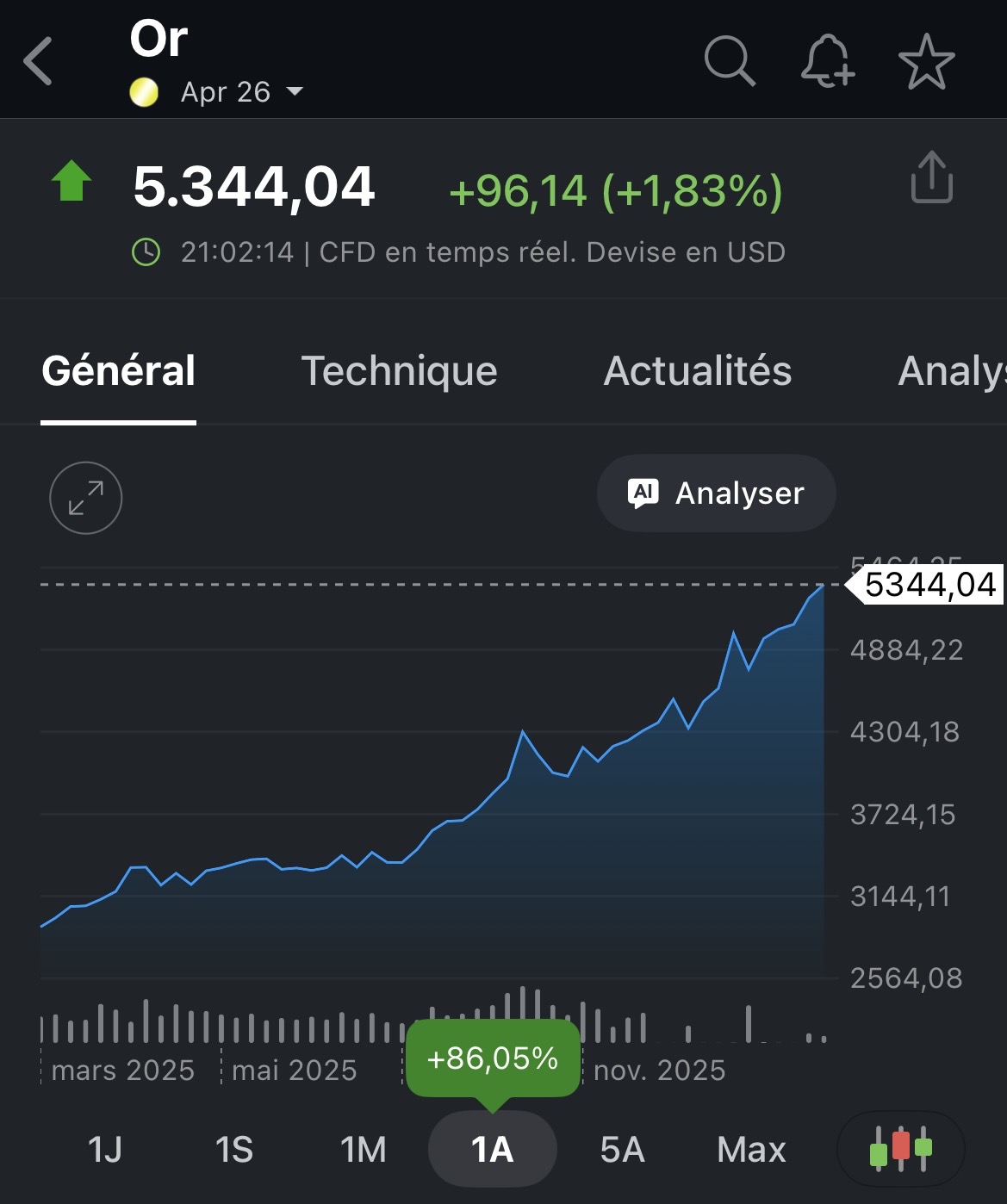 Et lĂ le Gold va repartir quelques temps je pense