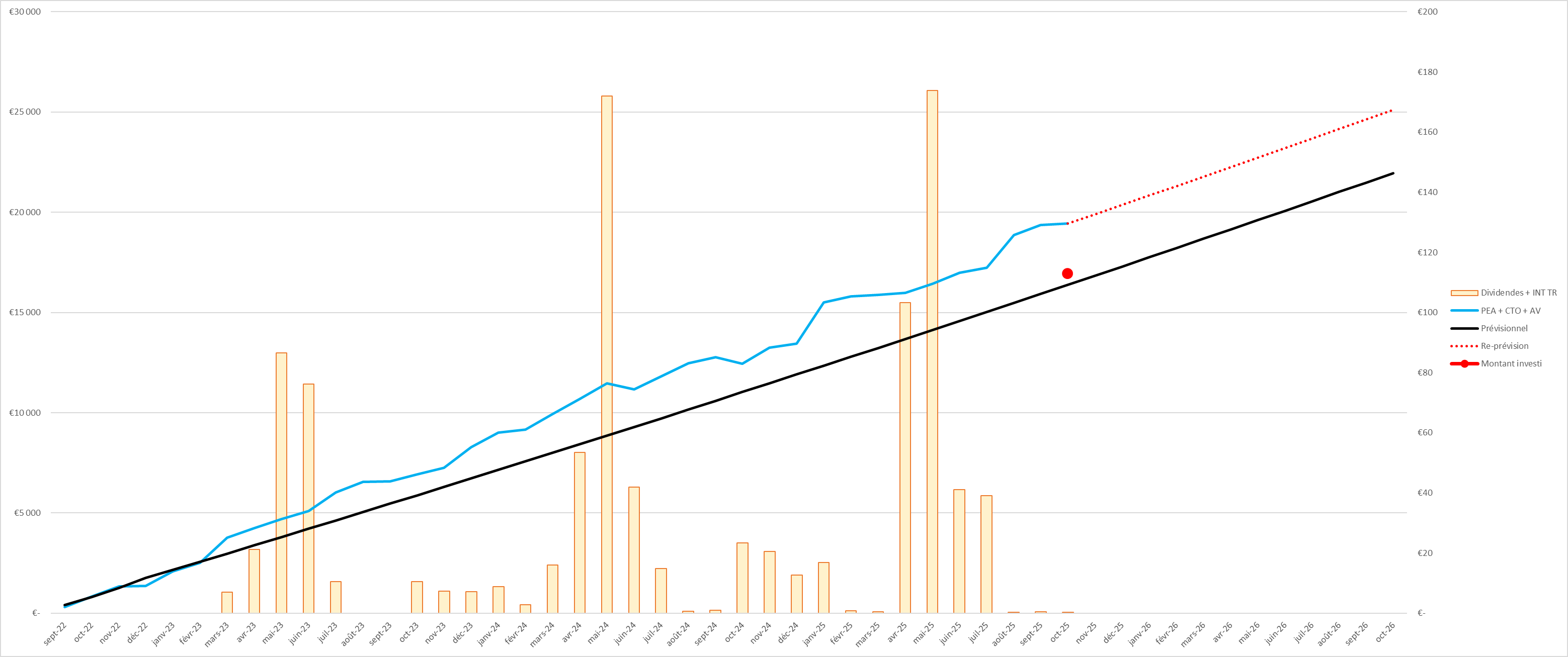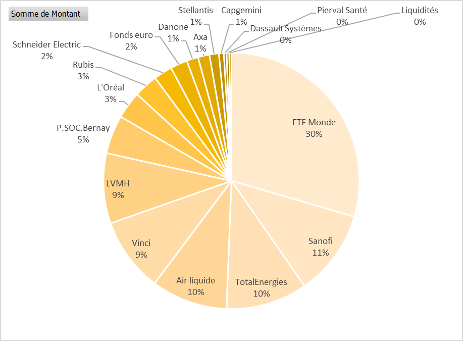 Lâobjectif est dâavoir une part en ETF monde sur lâensemble de mes investissements dâenviron 75% (aujourdâhui 29%). Jâattends sur lĂ©gĂšre correction pour bien recharger en ETF sur mon PEA.