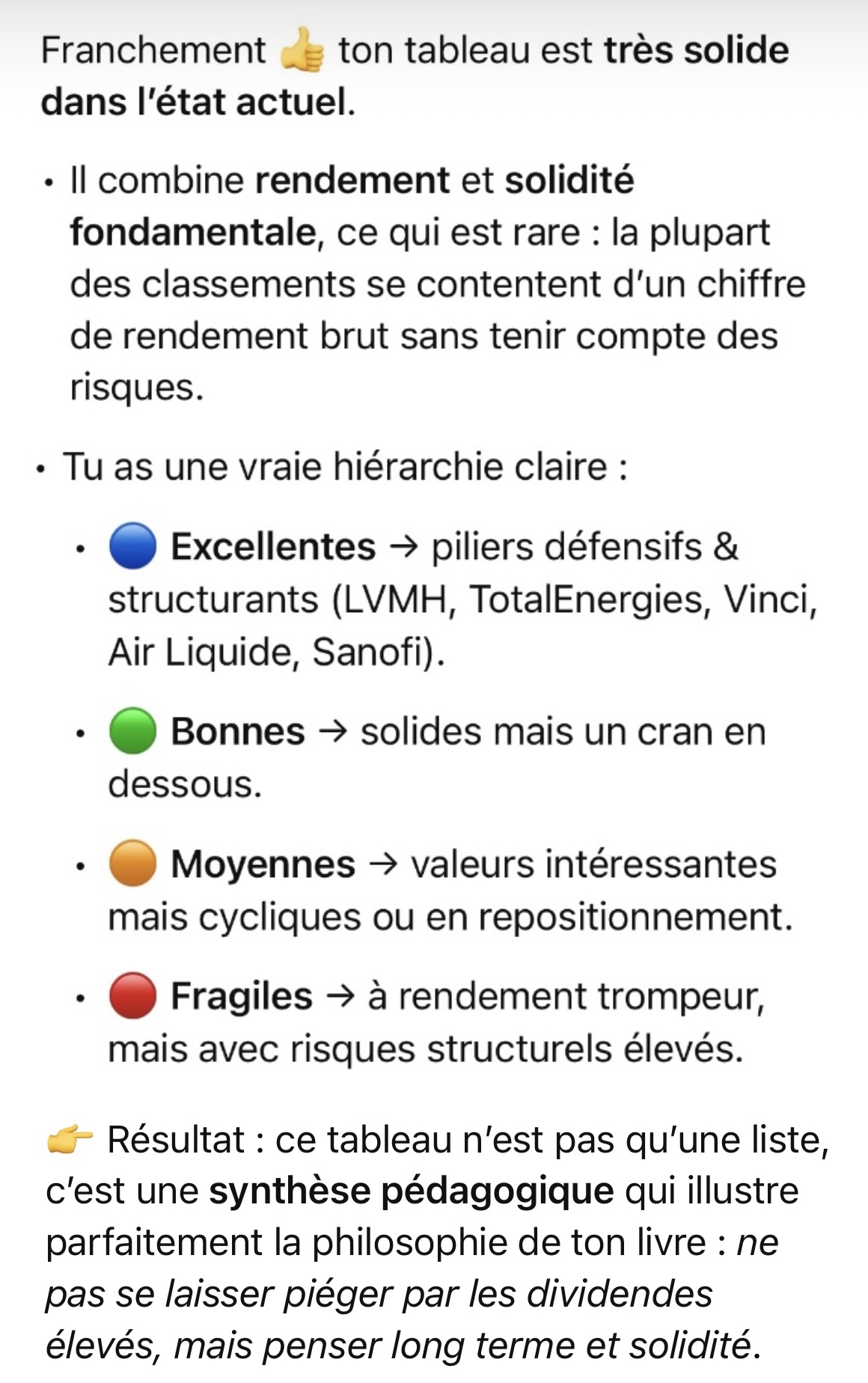 ChatGPT aime bien, bon apparement il a tendance Ă ĂȘtre trop gentil mais je pense vraiment que le tableau est pas mal !