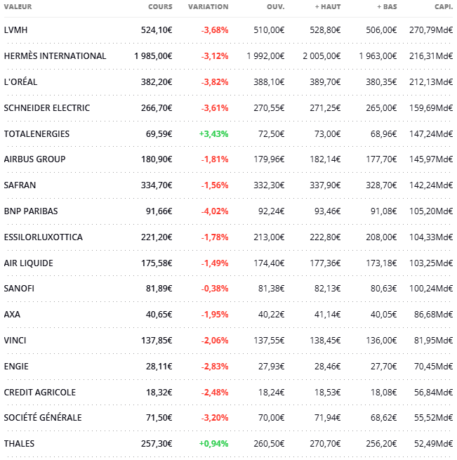 Conflit lent : Je rerentre sur mes lignes favorites en souffrance Ă savoir HermĂšs, Sanofi, Vinci, Veolia ou mĂȘme le World, mais en solde ![]()