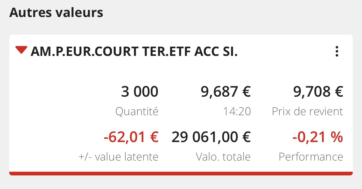 Ădit : Ah mais oui ça descend bien, jâavais pas regardĂ© la bourse vu que jâessaie de passer un mois sans rien acheter et tu me fais ouvrir lâappli ! ![]()