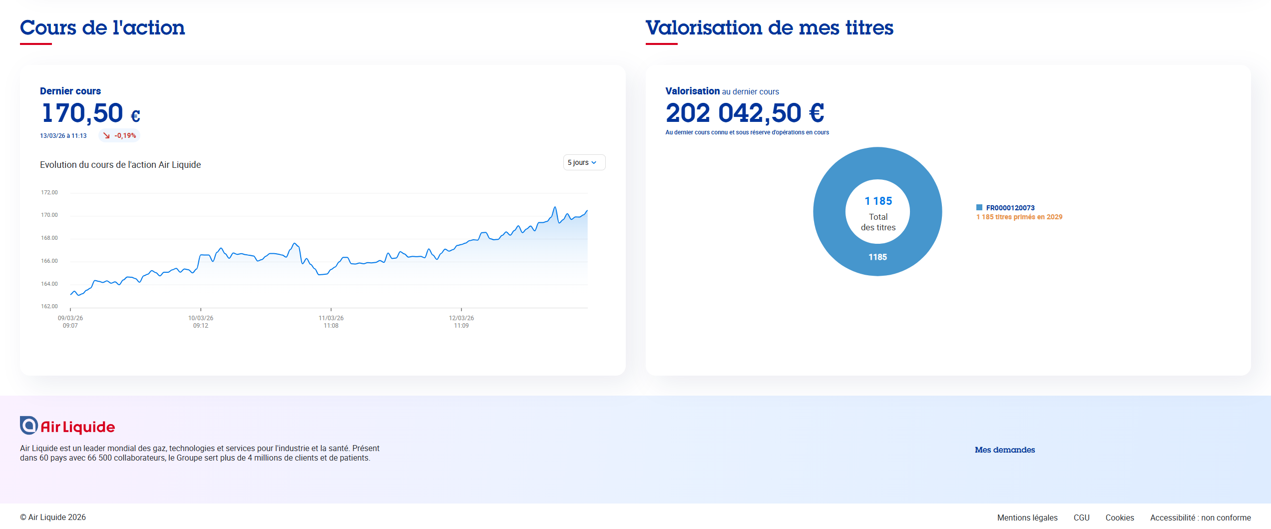 Et aprĂšs tu as droit Ă un petit graph sur le site officiel Air Liquide qui te permet de suivre les futures annĂ©es de prime de tes actions dâailleurs ![]()