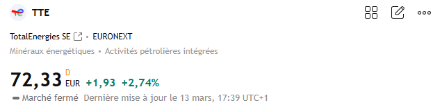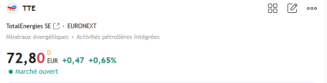 Je pense que si le but est de sortir, le prix actuel est dĂ©jĂ exceptionnel pour ce repositionner. Je suis bien content dâavoir actĂ© ma PV sur TTE pour entrer sur une action qui maintenant profiterais dâune fin de conflit ![]()