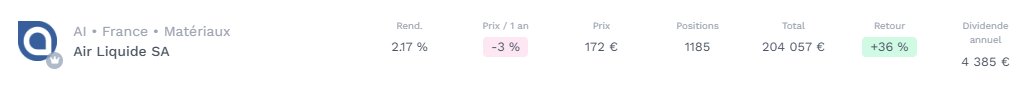 Tout comme le bonus prix du pĂ©trole nâest pas gravĂ©, Air Liquide distribuĂ© un dividende sans interruption depuis 1907 et a fais de la distribution un de ses fer de la ce depuis 1995 donc oui je tiens la distribution pour acquise surtout aprĂšs avoir regardĂ© les rĂ©centes prise de parole de la direction a ce sujet ![]()